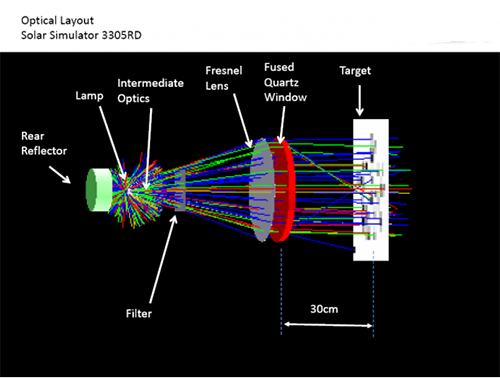 構(gòu)建了**終的太陽(yáng)模擬器系統(tǒng),并進(jìn)行了一系列測(cè)試,以證明殼體保持所需溫度和真空兼容性的能力。所有光學(xué)設(shè)計(jì)測(cè)試均提前進(jìn)行,以確保滿(mǎn)足**終用戶(hù)要求的所需光功率,光譜匹配,準(zhǔn)直角和其他規(guī)格。