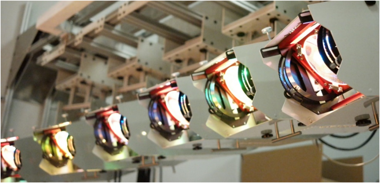 我們使用了8個2kW的QTH燈提供了1.5 x 1.5m2的輻照面積。輻照強度從1個太陽到0.1個太陽可調??蛻粢髮⒐庾V限制在紅外波長范圍內。