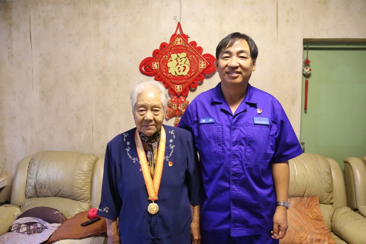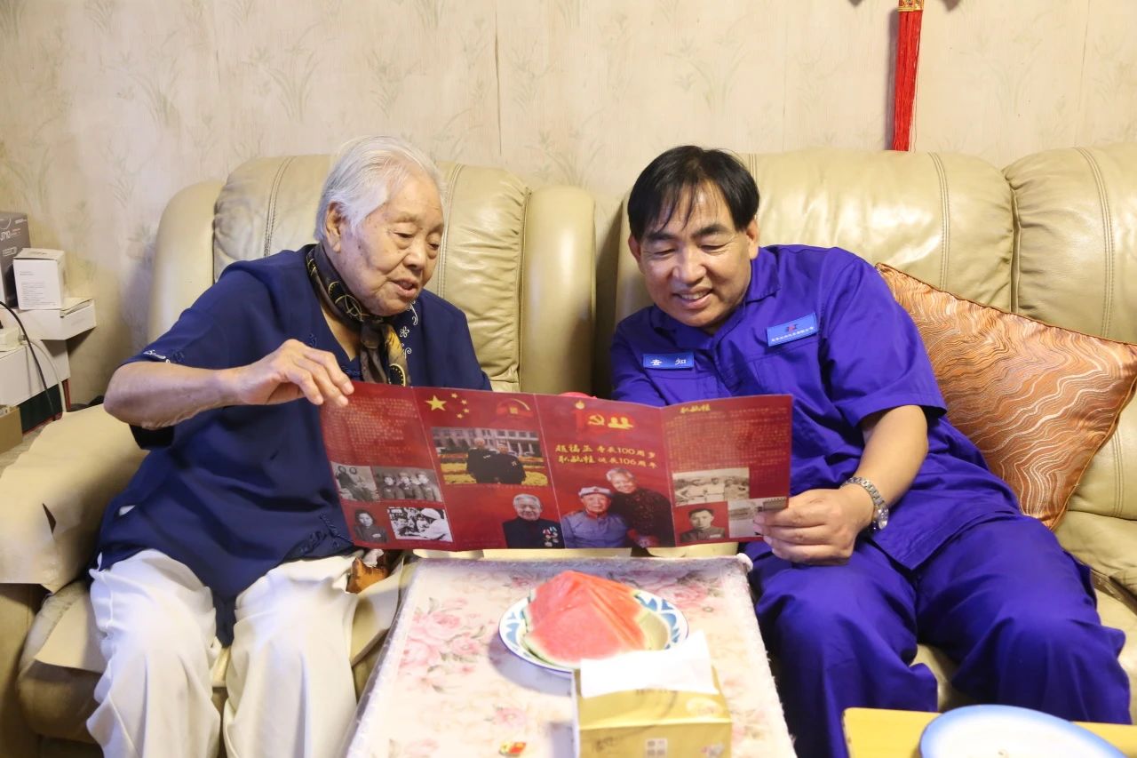 在趙福玉家中,查知親手將紀(jì)念章送到老干部手中,并和老人促膝交談,詳細(xì)詢問(wèn)她的生活起居和身體狀況,認(rèn)真傾聽老同志回憶烽火歲月的經(jīng)歷,以及對(duì)公司發(fā)展歷程的感悟,對(duì)如今幸福生活的感想。